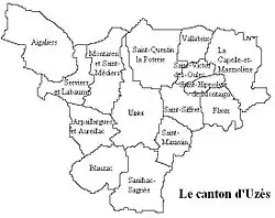 Het kanton Uzès omvatte tot 2014 de volgende 15 gemeenten: