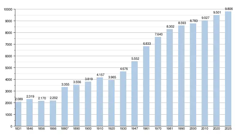 Alle historische gegevens hebben betrekking op de huidige gemeente, inclusief deelgemeenten, zoals ontstaan na de fusie van 1 januari 1977.