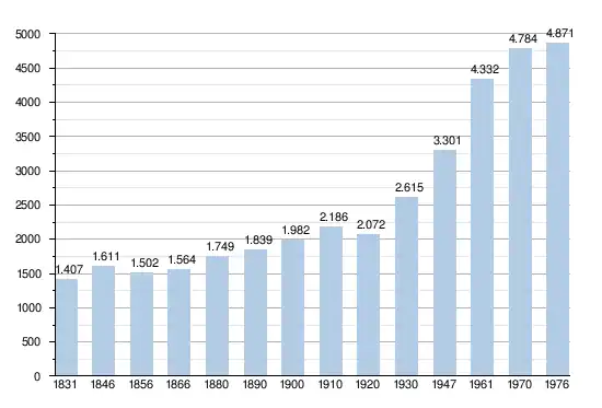 - Bronnen:NIS, Opm:1831 tot en met 1970=volkstellingen, 1976= inwonersaantal op 31 december