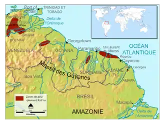 - ↑ Renault-Lescuie Odile, Les Galibi, 1985, p.19, Ethnies (fr) . Gearchiveerd op 23 juni 2020.