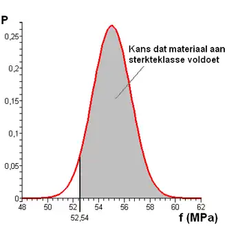 waarin de verdelinsfunctie van de standaardnormale verdeling is, de verwachtingswaarde en de standaardafwijking van de sterkte is, en de gewenste fractie. Dit betekent dat: