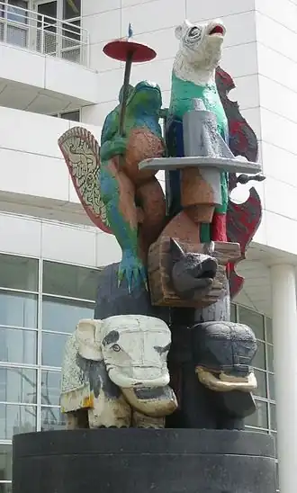 Een beeld van Appel, Frog with umbrella werd in 2001 neergezet in Den Haag, op het kruispunt van de Kalvermarkt, Grote Marktstraat en het Spui, bij het Stadhuis. Het beeld is 6 meter hoog en uitgevoerd in brons en in diverse kleuren beschilderd.