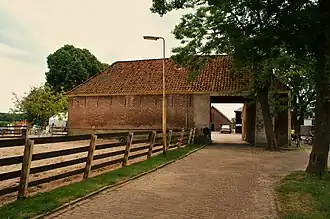 Het poortgebouw is in 1985 gerestaureerd. Het rechthoekige gebouw is gemaakt van bakstenen en heeft een met pannen bedekt schilddak. De poortdoorgang heeft een vlakke, houten zoldering. De poortdeur is van eikenhout. Achter het poortgebouw staat een boerderij, die omstreeks 1850 is gebouwd op de fundamenten van een eerdere boerderij. De kelder heeft een stenen tongewelf uit de middeleeuwen.