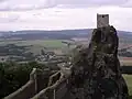 Het kasteel is al van verre te zien want het is gebouwd op twee oude vulkanische pluggen. Op beide basaltheuvels is een toren gebouwd. De ene toren wordt Panna "Maagd" genoemd (relatief gezien 57 m hoog) en de andere Baba "Oud wijf" (relatief gezien 47 m hoog). Relatief ten opzichte van de zeespiegel (481 meter).