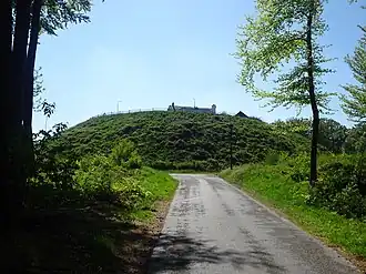 Wat wel overeenkomt in zijn beschrijving, in de opmerking dat het om een bestaande heuvel gaat die kunstmatig is opgehoogd.