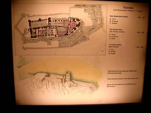 Het Kasteel Vianden in de Luxemburgse stad Vianden is gebouwd tussen de 11e en 14e eeuw op de funderingen van een Karolingische en Romeinse vesting (castellum). Het is een van de grootste en mooiste adellijke residenties van de romaanse en gotische perioden in Europa.