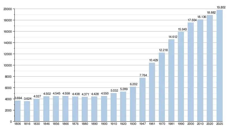 Alle historische gegevens hebben betrekking op de huidige gemeente, inclusief deelgemeenten, zoals ontstaan na de fusie van 1 januari 1977.