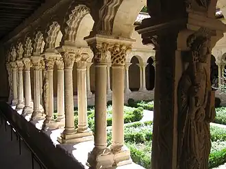 Het romaanse klooster, gebouwd aan het eind van de 12e eeuw, is een van de belangrijkste in de Provence, naast dat van Saint-Trophime in Arles. Kenmerkend zijn de arcaden gedragen door slanke dubbele zuilen. De zuilen zijn gemaakt van marmer en versierd met schilderachtige kapitelen, die niet van elkaar verschillen. Het klooster is plat en dat is het altijd geweest. Dit had als voordeel dat structurele problemen van gewelven, waarmee de bouwers anders te maken zouden krijgen, afwezig waren. Het was hier, zoals in Arles, niet nodig om zware pilaren in de arcadezone van de binnenplaats te plaatsen om de gewelven te ondersteunen. Hier kon een ononderbroken opeenvolging van slanke zuilen de binnenplaats omringen.