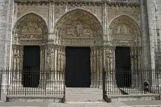 Het bekendste portaal van de kathedraal is het Koningsportaal, dat al voor 1194 was gebouwd. Het bevat beelden van de wetenschappers uit de klassieke oudheid, van Pythagoras, Euclides en Aristoteles, en allegorische figuren die de Vrije Kunsten voorstelden, de muziek, astronomie, rekenkunde, meetkunde en dialectiek. De moeder van God zwaaide hier zelf de scepter over. In het midden zetelt de zegenende Christus, geflankeerd door een engel (Matteüs), een adelaar (Johannes), een leeuw (Marcus) en de os (Lucas). Dit tableau is gebaseerd op het visioen van de evangelist Johannes, dat hij op Patmos kreeg.