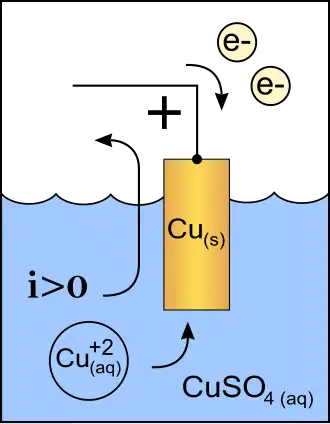 - Aan de anode vindt bij elektrolyse en bij galvanische cellen altijd een chemisch oxidatieproces plaats. Ook bij accumulatoren, ongeacht of de accu nu ontladen of opgeladen wordt.