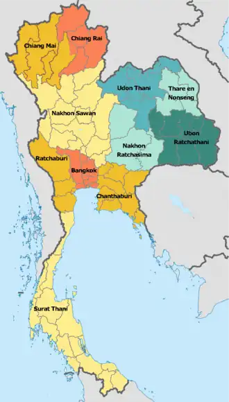 Thailand telt thans 2 aartsbisdommen en 9 bisdommen.