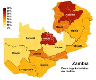 De katholieken vormen de grootste bevolkingsgroep in Zambia: in 2005 waren ongeveer 3.082.000 (28%) inwoners van Zambia katholiek.[1] Paus Johannes Paulus II bezocht Zambia in 1989.[2]