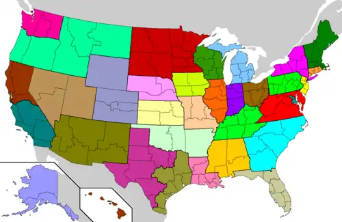 - ↑ Onder de Verenigde Staten wordt hier verstaan de 50 staten, Washington D.C. en de Amerikaanse Maagdeneilanden. Dus zonder de unincorporated territories.