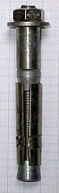 - Een keilbout is een metalen plug, die bestaat uit een draadeind met een conische, vierkante kop of een conische moer met daaromheen twee half- of vier kwartronde stalen vleugels die door een dunne verende staaldraad bijeen worden gehouden. Op de bevestigingszijde is een gewone moer (vaak met ring) gedraaid. Als het geheel in het gat wordt gestoken en de gewone moer wordt aangedraaid, dan trekt de vierkante kop of de conische moer zich tussen de vleugels zodat deze zich spreiden en zich vastklemmen in het gat. Afgebeeld is een moderne uitvoering. Keilbouten zijn een uitvinding uit 1906 van de firma Eiffe un Fehr uit Hamburg. [1]