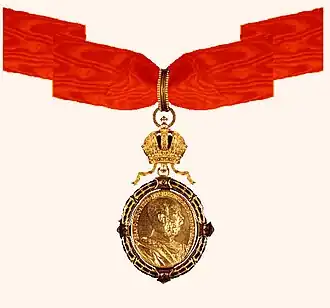 - Koningin Elisabeth van Roemenië op 28 september 1896 ontving de dichtende vorstin het ereteken met briljanten.