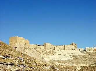 De stad heeft een 12de-eeuwse kruisvaardersburcht. Deze vesting werd in 1142 gebouwd door Payen le Bouteiller op de ruïnes van een vroegere citadel die dateerde uit de tijd van de Nabateeërs. De kruisvaarders noemden het Krak des Moabites, zoals ze vaker burchten krak noemden (naar een Arabisch woord voor 'klein fort'), vanwaar de naam Kerak is afgeleid. Zijn hoge ligging, vlak bij de Koninklijke weg, maakte het mogelijk het verkeer zowel uit het noorden als uit het zuiden te controleren.