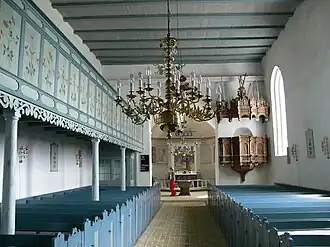 Het kerkschip wordt gedomineerd door twee barokke galerijen: één langs de westelijke muur uit 1692 en één langs de noordelijke muur uit 1734.