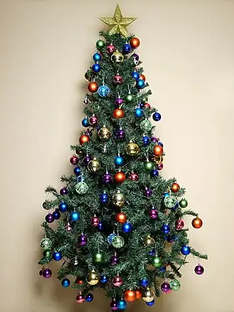 - kerstboomverlichting, vaak slingers van lampjes die om de boom gewikkeld worden;
