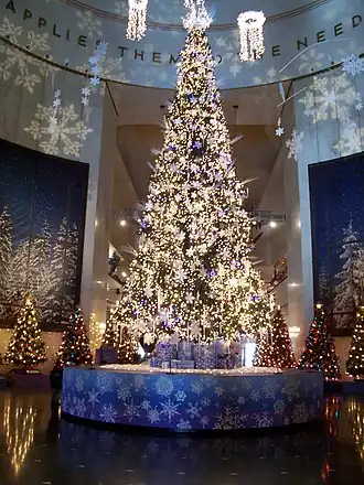In veel steden en dorpen wordt een grote verlichte kerstboom opgesteld, gewoonlijk op een marktplein of een andere centrale locatie. Een van de beroemdste voorbeelden is de fijnspar die jaarlijks in Rockefeller Center in New York wordt neergezet. Deze boom, die doorgaans een hoogte heeft van 22 tot 28 meter, wordt versierd met tienduizenden lichtjes. De ceremonie van het ontsteken van de lichtjes vindt plaats tijdens een twee uur durende show op de woensdag na Thanksgiving en wordt live op televisie uitgezonden.
