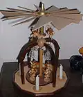 De kerstpiramide is een soort van carrousel met op verschillende niveaus een aantal beeltenissen van christelijke motieven, zoals engelen of kribbe-scènes, en anderen met meer seculiere motieven zoals bergbewoners, bossen en andere scènes uit het dagelijks leven van de mensen in het Ertsgebergte. De draaiende beweging van de piramides wordt traditioneel verkregen met behulp van kaarsen, waarvan de stijgende warmte de propeller bovenin laat draaien.