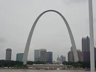 Ook recentere bouwsels maken er gebruik van, zoals de 192 m hoge Gateway Arch van architect Eero Saarinen in St.Louis in de Verenigde Staten. Met een parameterwaarde m zijn de breedte en hoogte aan elkaar gelijk. Als een assenstelsel wordt gedacht met oorsprong in de top van de boog en met de y-as naar beneden, is de vergelijking van de centrale lijn gegeven door: