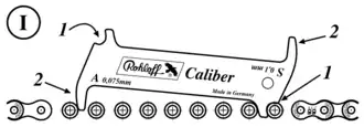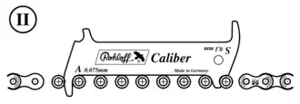 Een alternatief gereedschap om de verlenging van de ketting te meten is de schuifmaat.