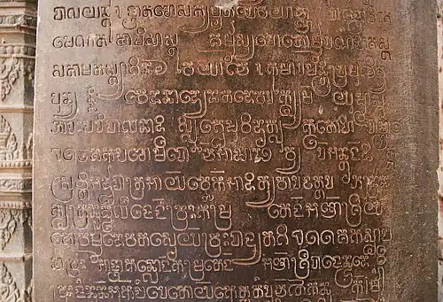 De inscripties die de bewoners van het rijk achterlieten zijn ofwel in Sanskriet ofwel in het Khmer. De teksten in het Sanskriet zijn lofzangen op de koning of religieuze zegeningen, die altijd eenzelfde patroon volgen. De inscripties in het Khmer zijn voornamelijk administratief van aard en regelen het bezit van land of slaven. Deze inscripties zijn vaak van een datum voorzien, wat historici als Georges Coedès (1886-1968) in staat stelde een incomplete, maar nauwkeurige chronologie op te stellen. Hoewel van veel heersers van Angkor bekend is wanneer ze heersten en welke wapenfeiten ze verrichtten, is echter onduidelijk hoe de koning zijn macht precies uitoefende. Ook over de bevolking zwijgen deze teksten.