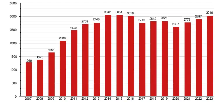 Hieronder staan de verkoopcijfers van Kia vanaf 2007 in duizendtallen:[5]