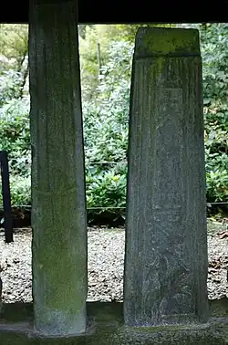 Een van de gisanten in de collectie heeft een inscriptie. De gisant is gemaakt in de stijl van de Iona-school en dateert uit de veertiende of vijftiende eeuw.[5] De inscriptie in Lombardisch lettertype is gekerfd in het kussen en wordt gelezen van links naar rechts over het hoofd van de gisant heen. Er staat: HIC IACET IO/HA(N)NES M[A]V/RITI(I) ET EIV/S FILIVS.[5] Dit kan worden vertaald als: Iohannes, zoon van Mauritius en zijn zoon. Vermoedelijk betreft het hier een grafsteen van een leider van de clan Murachie.[5]