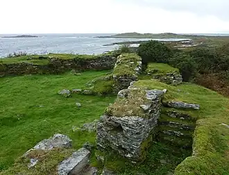 - ↑ a b c H. Fairhurst, The galleried dun at Kildonan. Bay, Kintyre, Proc Soc Antiq Scot 73 (1938–9), 185–228.