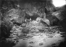 Duitse expeditieleden verkennen in 1906 een grot in de helling van de Kibo[122]