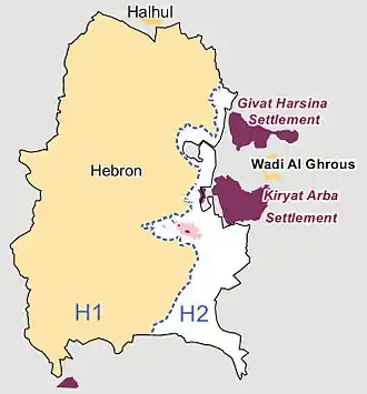 In 1968 nam een groep religieus-zionistische joden onder leiding van rabbijn Moshe Levinger als 'toeristen' hun intrek in het Park Hotel in Hebron om daar Pesach te vieren; vervolgens registreerden ze zich daar en bleven er. Onder het premierschap van Levi Eshkol, met Moshe Dayan als Minister van Defensie, werd voor deze groep joden onder valse voorwendselen een nederzetting gebouwd: "op militair bevel" werd een terrein naast Hebron geconfisqueerd, zogenaamd "voor veiligheidsdoeleinden", met welk argument de Palestijnse burgemeester van Hebron werd misleid. Op dat terrein werden 250 'units' gebouwd, die zouden dienen voor militair gebruik van het Israëlische defensieleger. Deze units werden vervolgens vervangen door woningen, waarmee de nieuwe nederzetting Kirjat Arba werd gesticht.[7]