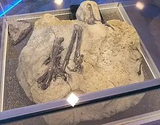 De armen zijn sterk gereduceerd, getuige de korte en dunne opperarmbeenderen.