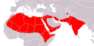 Deze in groepsverband levende soort komt algemeen voor in West- en Zuid-Azië en Noord- en Oost-Afrika, met name van Marokko tot Burma, zuidelijk naar Mauritanië, Senegal, Mali, Burkina Faso, Niger en Kenia.