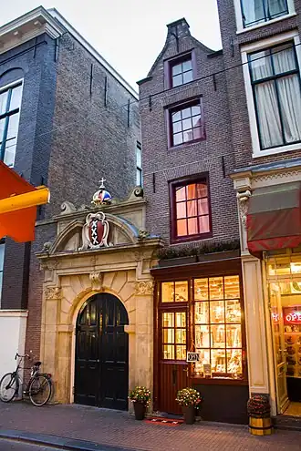 Direct naast het huisje staat een van de bekendste poorten van Amsterdam: de poort naar de Waalse Kerk. Deze poort, gebouwd in 1616, is van de hand van architect Hendrik de Keyser (1565-1621) en diende als doorgang voor uitvaartdiensten.