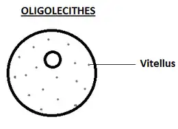 A. Isolecithaal of oligolecithaal (weinig, gelijkmatig verdeelde dooier)