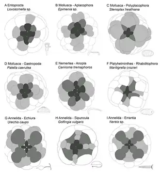 - ↑ a b Boyer, Barbara C., Jonathan, Q. Henry (1998). Evolutionary Modifications of the Spiralian Developmental Program. Integrative and Comparative Biology 38 (4): 621–33. DOI: 10.1093/icb/38.4.621.