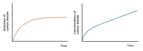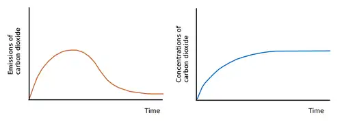 Het IPCC werkt met het concept van een vast koolstofbudget. Als de uitstoot op het huidige niveau van 42 Gt CO2 blijft, zou het koolstofbudget om de opwarming te beperken tot 1,5 °C in 2028 kunnen zijn opgebruikt. De temperatuurstijging tot dat niveau zou met enige vertraging plaatsvinden tussen 2030 en 2052.