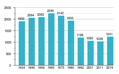 Van de 1.028 inwoners die in februari 2011 werden geregistreerd, waren er 152 jonger dan 15 jaar oud (15%), terwijl er 145 inwoners van 65 jaar of ouder werden geteld (14%).[4]