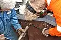 Tussen de platen werden bij een schip nog repen materiaal gedaan, om nog zekerder te zijn dat de verbinding echt waterdicht zou worden.