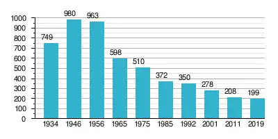 In de eerste volkstelling van 1934 registreerde het dorp 749 inwoners. In 1946 bereikte het inwonersaantal een hoogtepunt met 980 inwoners. Sindsdien loopt het inwonersaantal in een rap tempo terug. Op 31 december 2019 telde het dorp 199 inwoners.[1]