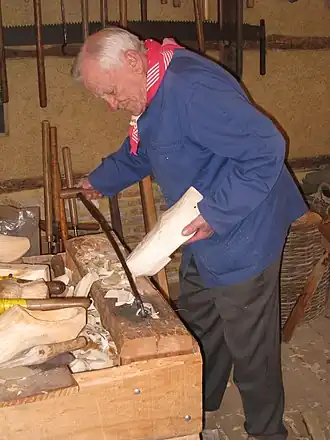 Op verzoek kon men er ter plaatse de oudste nog actieve Vlaamse klompenmaker Sam Mondelaers aan het werk zien. Hij is ondertussen gestorven. Uit een stuk wilgenhout kapt en snijdt hij in een nagebouwde lemen klompenhut anno 1920 een passende klomp.