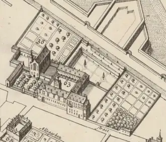 Ook de Franse dichter Jean-Baptiste Rousseau werd er in 1741 begraven. De kloostertuin strekte zich uit tot aan de stadswallen en telde twee kluizen (Sint-Onufrius en Sint-Katelijne).