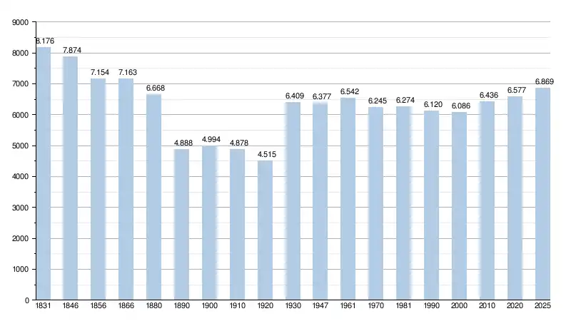 Alle historische gegevens hebben betrekking op de huidige gemeente, inclusief deelgemeenten, zoals ontstaan na de fusie van 1 januari 1977.