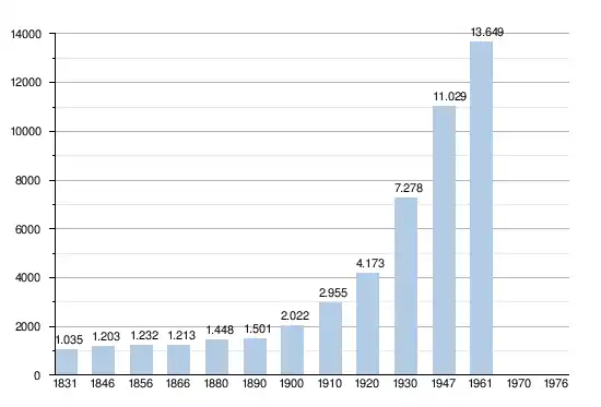 - Bronnen:NIS, Opm:1831 tot en met 1970=volkstellingenr