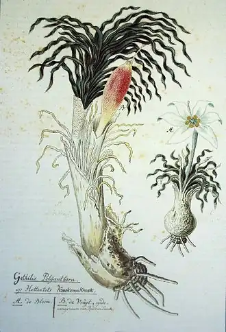 Het plantje is een bolgewas en verraadt zijn aanwezigheid in de zomer, rond Kerstmis, door alleen een bloem boven de grond te laten komen die vervolgens weer verwelkt en verdwijnt. Het ovarium bevindt zich ondergronds en blijft daardoor koel. Pas nadat er in de herfst wat regen gevallen is, komen er krullende bladeren op, samen met een vrucht die wel wat op een klein banaantje lijkt. De plant wordt niet veel hoger dan 10–15 cm. Het vruchtje is eetbaar.