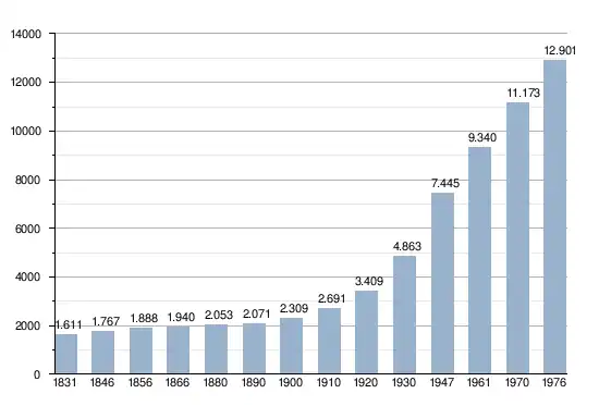 Bronnen: NIS Opm:1831 t/m 1970=volkstellingen; 1976=inwoneraantal op 31 december;