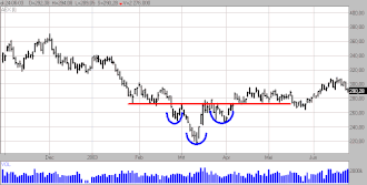 Is hetzelfde als een dubbele top of bodem, alleen ontstaat er in de grafiek een extra top en een extra tijdelijke bodem.