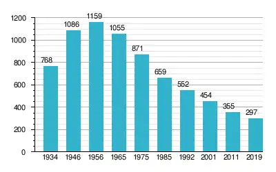 In de eerste volkstelling van 1934 registreerde het dorp 768 inwoners. Dit groeide tot een officiële hoogtepunt van 1.159 inwoners in 1956. Sindsdien neemt het inwonersaantal af. Op 31 december 2019 telde het dorp 297 inwoners.[1]