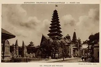 Nederland had op de tentoonstelling een Nederlands-Indisch paviljoen opgebouwd: het bestond uit een hoofdpaviljoen waar omheen een aantal kleinere paviljoens waren geplaatst. Het ontwerp van het paviljoen — een verzameling van verschillende Indische en Europese architectuurstijlen – was gemaakt door architect Willem Zweedijk geboren in Padang en werkzaam in Surabaya. Zweedijk had in 1929 de prijsvraag gewonnen die was uitgeschreven door de 'Algemene Commissie voor de Nederlandsche deelneming aan de Internationale Koloniale tentoonstelling Parijs 1931' voor het ontwerp van het Nederlands-Indisch paviljoen. Zweedijk begeleidde ook de bouw van het paviljoen in Parijs; hiervoor verhuisde hij tijdelijk van Nederlands-Indië naar Parijs.[2]